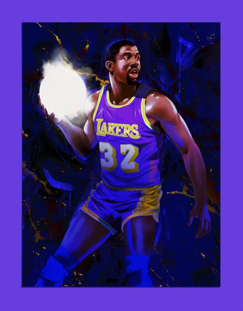 Other times the pairing is just intuition, a hunch. I’ll put an artist’s name next to a player’s name because it just feels right. I reach out to the artist to see if they’d like to work together. I ask who their favorite player is (often having no clue at all) and their first pick is the player I’ve already put their name next to. That just happened with Parker-Nia Gordon and Dennis Rodman. I love when things line up like that—it feels meant to be!
