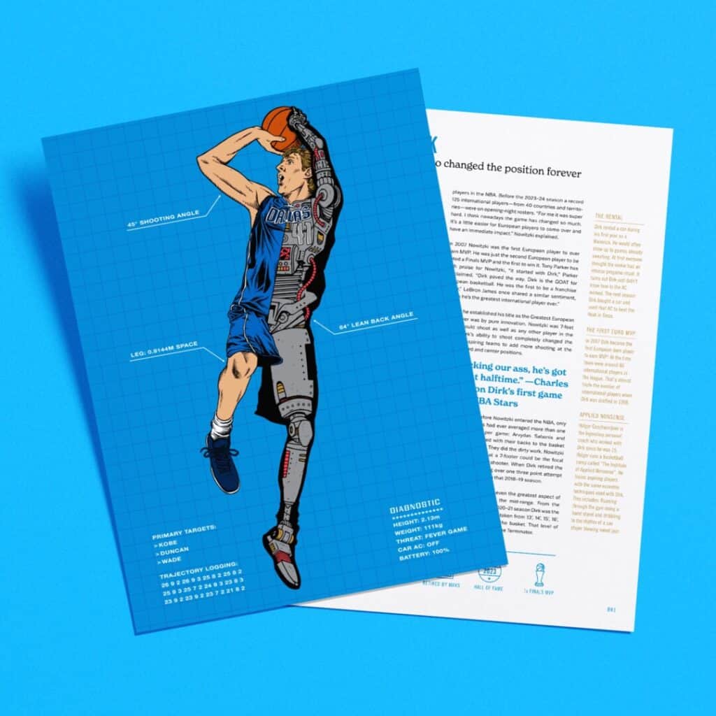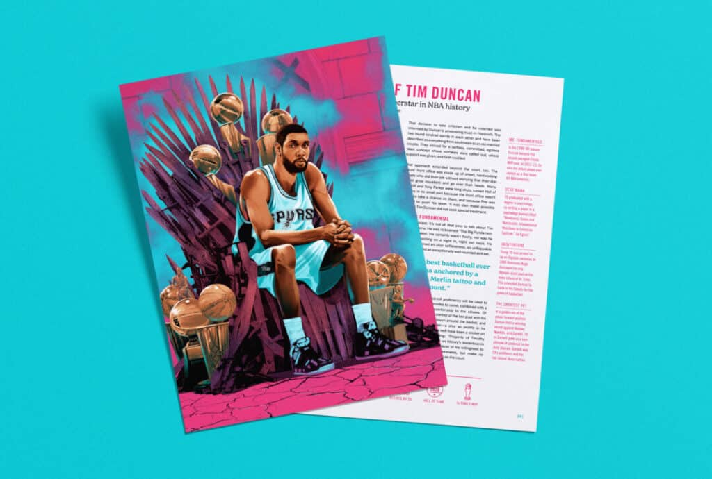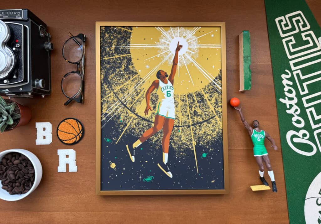 Baseline Review will honor 50 NBA players with illustrations and stories—the history and stats that built these legendary careers. Boneyard took a unique approach to the prints for Baseline Review. Each player has two illustrated 9” x 12″ prints, and on the reverse side of each print is the story of the player. These stories are written by voices like Clayton Crowley, Hall of Famer Jackie MacMullan, Louisa Thomas, and Kirk Goldsberry— writers who bring context and meaning to the stats and record breaking achievements. Even former players—like Celtic legend Bob Cousy—have made contributions to the book.