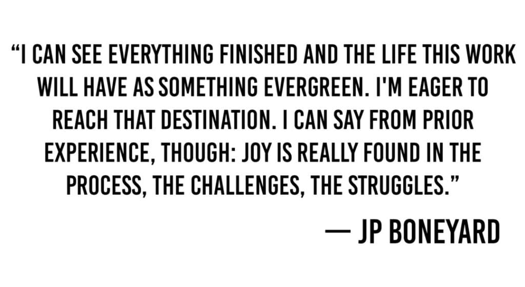 I can see everything finished and the life this work will have as something evergreen. I’m eager to reach that destination. I can say from prior experience, though: joy is really found in the process, the challenges, the struggles. And who knows … the book may be something that a small group of people adore but it could ultimately struggle to find an audience.